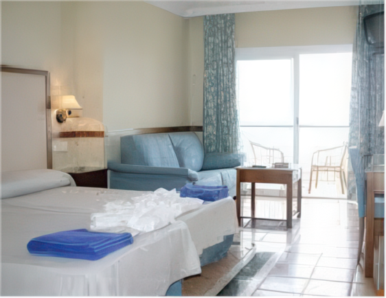 Están preparadas para que disfrutes de una estancia inolvidable, con una decoración moderna y elegante, equipadas con todas las comodidades: baño privado, climatización independiente, televisión satelital, caja de seguridad, y una amplia terraza con vistas espectaculares al Mediterráneo. Disponemos de habitaciones adaptadas para personas con movilidad reducida, ideales tanto para una escapada romántica como para un retiro de descanso y bienestar.